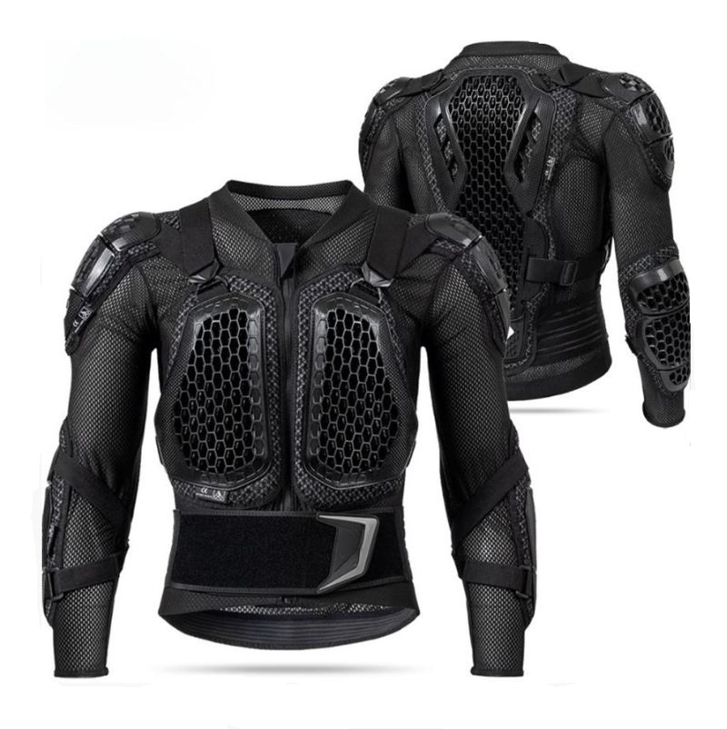 Высококачественный пластик защищает тело от ударов. Уязвимые зоны — грудь, спина, плечи, локти, талия — имеют твердую подкладку.
